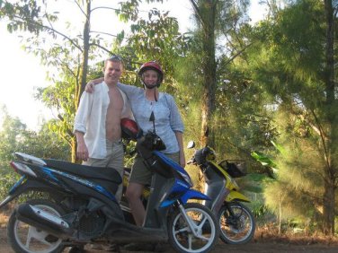 Vi trodde inte att det gick att hitta öde stränder på en sån här ö, men vi snubblade på en lång rackare på sydsidan = slappa igen, men sen var det fan slut med slappande…Vi skulle upp i bergen med våra moppar för att komma upp på höjden lite (högsta toppen är ca 600 m tror jag) titta på lite vattenfall och göra lite schysst off-the-beaten-track-turistande.