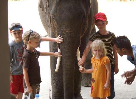 Alltså, de två senaste dagarna inte så mycket mer än sol o bad att berätta om, men i förrgår däremot var vi på utflykt med elefantsafari, krokodilshow och lite annat. Beskrivningen lovade gott, men det som var roligast var att rida på en elefant (iaf för mig som aldrig gjort det förut). Mäktiga djur men med något sorgset över sig – eller var det kanske bara jag som tyckte det. Syskonbarnen var ju extatiska iallafall över allt som fanns där.