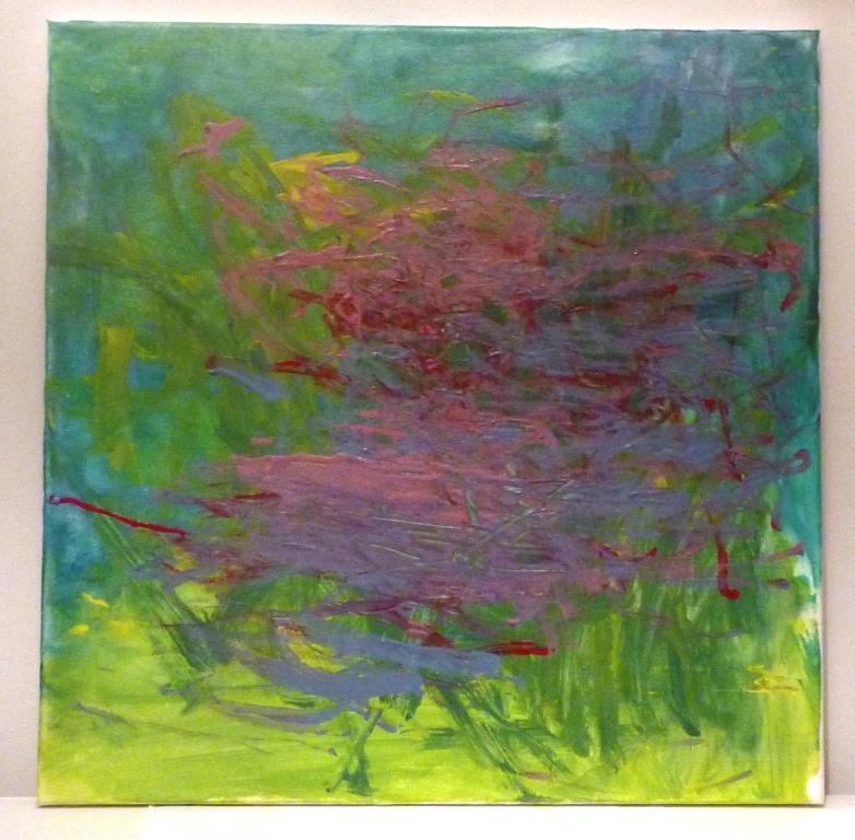 Vi budade på en tavla som barnen på H’s avdelning hade målat tillsammans i vackra gröna färger med lite rosa och rött på. Det ser ut som vilken modern konst som helst. Vi vann budningen med 350 kr, och så här ser den ut