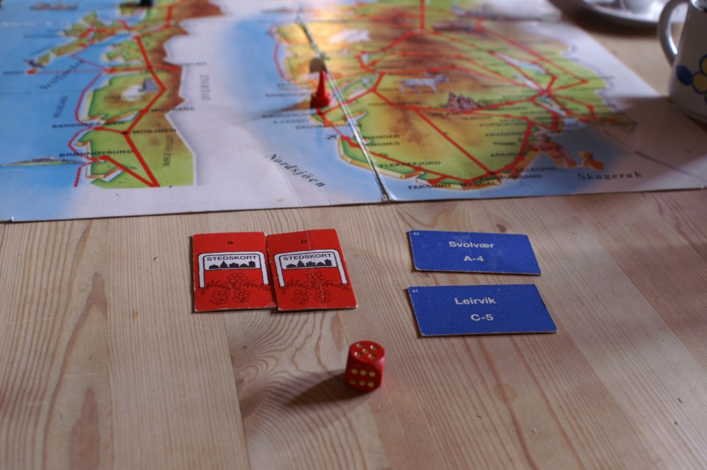 Väldigt kul och bra spel vars regler vi hittade på tyska på nätet (!) och som ökade på i allafall mina kunskaper om Norge något. Som att Oslo bytte tillbaka namnet på Kristiania till Oslo 1925 och inte 1905 som jag trodde. 1905 hade annars varit en ganska naturlig markering att i samband med unionsupplösningen byta namn på huvdstaden för att bli kvitt all symbolik som påminner om ockupation och förtryck. Men det var alltså 1925 och inget annat.