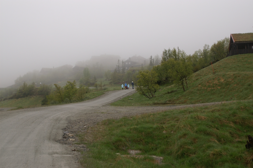 Vi har besök av vänner från USA som är här en månad för forskningsutbyte med Universitetet i Oslo, och det sammanföll med att en av jobbets hytter stod obokad en vecka. Den här veckan närmare bestämt, så nu är vi helt plötsligt på 1000 m över havet omgivna av ett landskap fullt av skyltar med skidinstruktioner, spår och riktningar men inte en gnutta snö inom synhåll.
