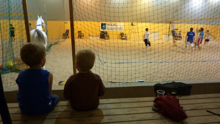 Det var beachvolleybollturnering med O’s jobb, Netlight, i sagda fjellhall, och självklart tar man tillfället i akt att hänga på och vara idrottsgroupie! Med två små barn iofs, så groupiestatusen kanske är lite tveksam men ändå – friskt vågat hälften vunnet.