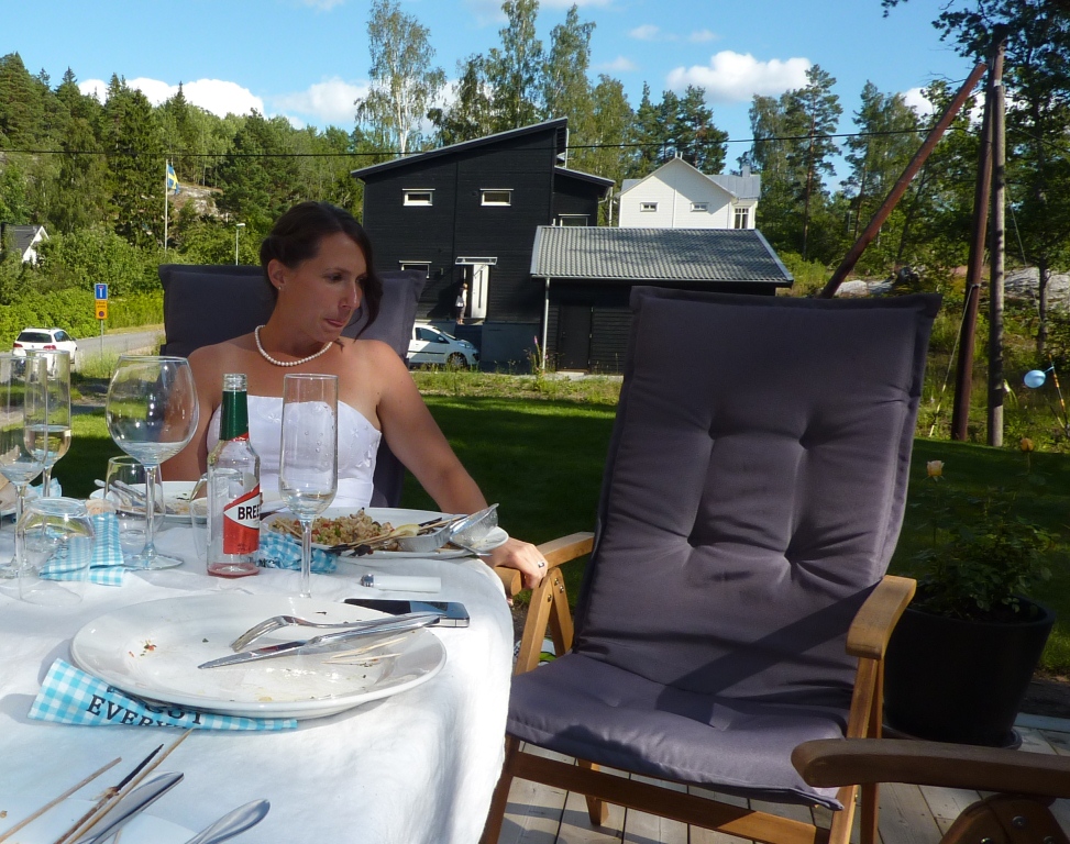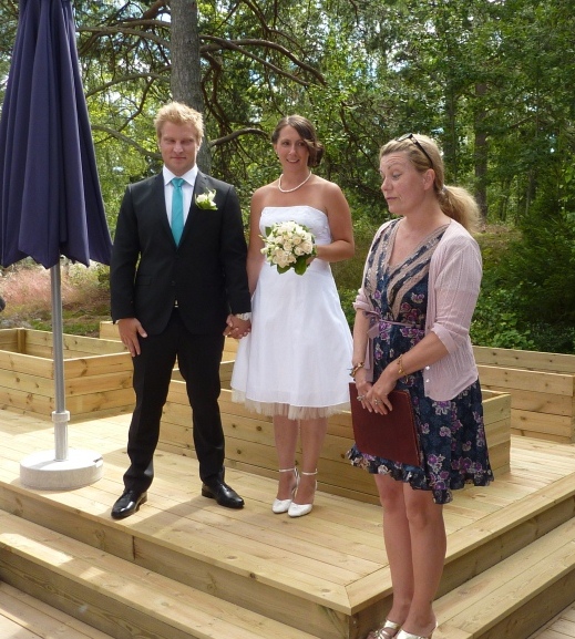 Som alltid på borgerliga bröllop är ceremonin kort och innehållsrik, så även denna gång. Efter vigseln var det fotografering i trädgården och sen en härlig buffé där den som inte blev mätt fick skylla sig själv, så gott var det.