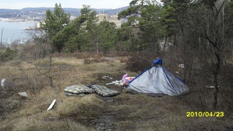 Hur som helst så fick frågan uppmärksamhet. Alla kunde läsa mer eller mindre sanna saker i lokaltidningarna om hur de bodde på gatorna, bajsade ner parkerna och tiggde och stal. (Lokal)tidningarna visade ”Kommunens skrekkbilder” (vilken titel va?! måste läsa!!) på hur dom bodde. Bland annat så här: