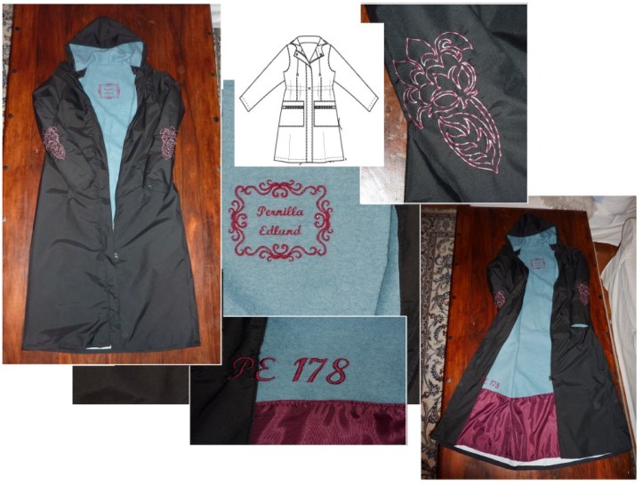 Syprojekt 178 är fullbordat. Den är varm, snygg och jag blir inte blöt varken utifrån eller innifrån när jag har den på mig, mission accomplished. Ullfoder från Stoff og Stil, yttertyg från shelby.fi som har en uppsjö av utomhustyger på  metervara. Snabb leverans och ok priser, rekommenderas varmt. Mönstret är ett mönster på en parkas från Stoff og Stil som jag har modifierat lite; inga snoddar, invända fickor istället för utanpåliggande och så längre förstås. Inte bli blöt om benen, ok?