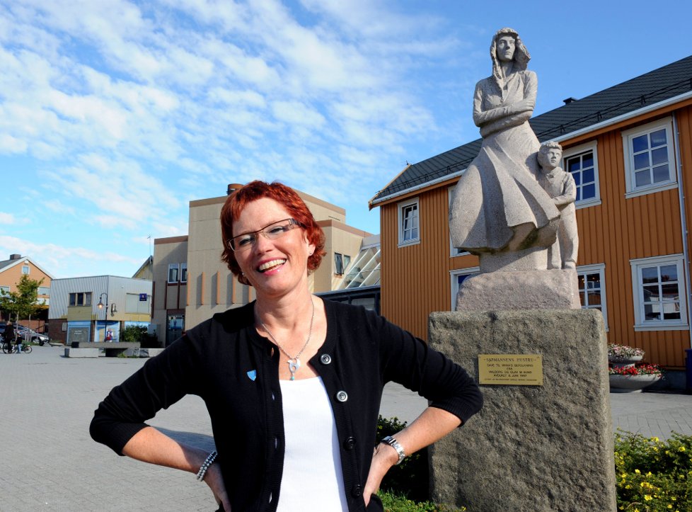 Det här är Röde Karin. Eller Karin Søraunet, som hon egentligen heter. Hon har mångårig erfarenhet som politiker i Kristelig Folkeparti, KrF. Bland annat har hon varit fylkesleder och kommunordförande; förmodligen en mycket kompetent kvinna.
