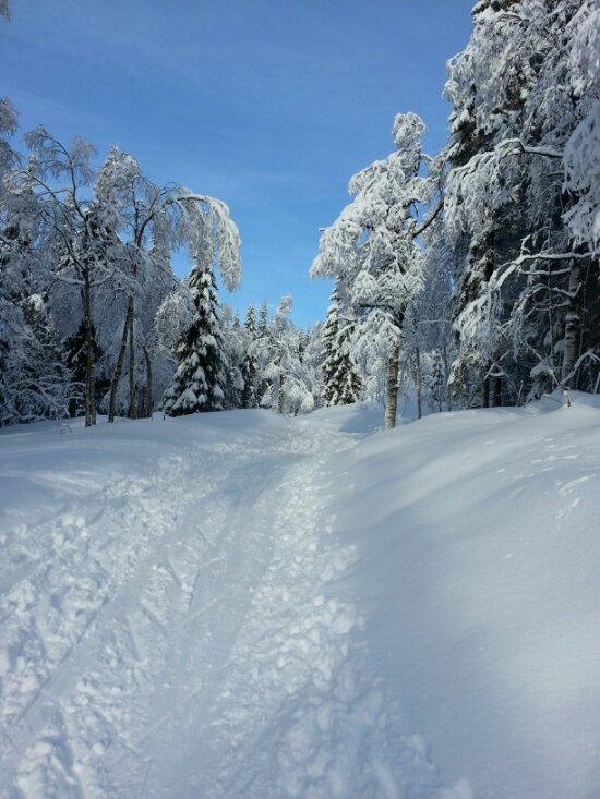 Tja, först och främst lärde jag mig att min stadig het på skidor framför allt beror av hur bra underlaget är. Dvs jag är inte så himla bra på att åka eftersom jag så lätt tappar kontrollen när det är opreppade spår. Och det var det. Jag var förvånad över att hela backen ner till Tryvannstua (ca 3,5km) var helt orörd. Ja förutom av de som varit där före mig då. Alltså var jag Bambi igen – fullständigt ute på hal is fast i drivor av nysnö istället. Panik, svett och ångest.