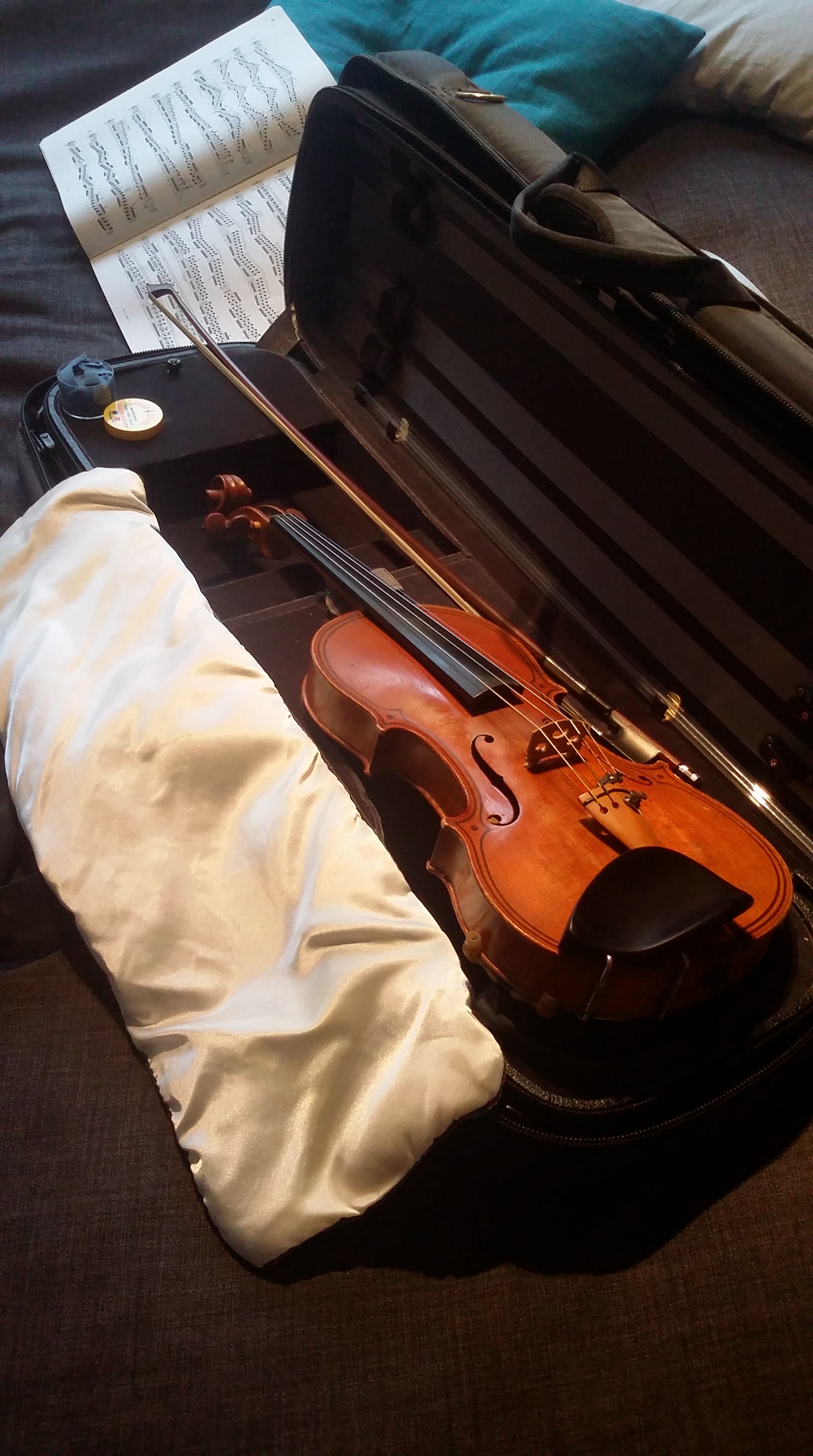 Den ligger på garderoben i sovrummet så jag ser den varje dag men jag tar aldrig ner den och spelar på den. Mina kolleger blev mycket förvånade när vi pratade musik första gången och dom förstod att jag hållit på med klassisk musik i många år. Jag blev lika förvånad själv över att dom inte visste – det har jag ju alltid gjort, det vet väl alla som känner mig? Har bara en liten paus nu, på obestämd tid. Det blev lite mycket där för nåt år sen så det var fint att pausa lite förstår ni. Och det förstår dom ju.