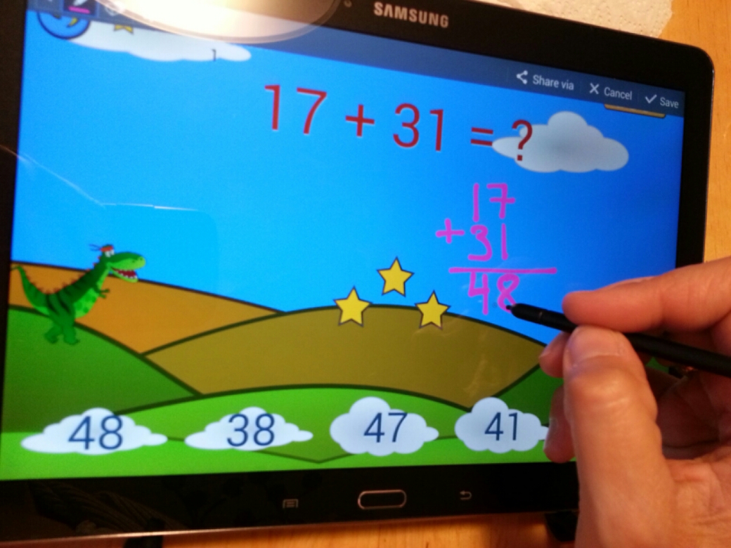 Och om du har en person hemma som vill lära sig hur man lägger ihop tal större än vad fingrarna klarar av, så tar du fram din S-pen och blir till SUPERPEDAGOGEN!