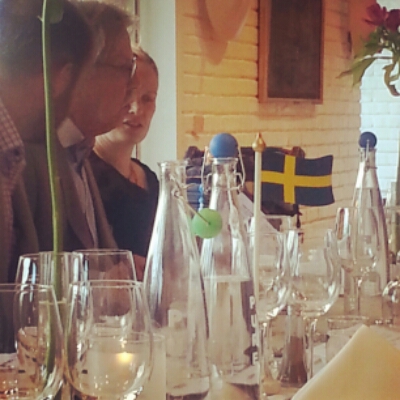 Vi äter en bit mat, dricker något gott till och sjunger sånger vi alla kan. Eller önskar att vi kunde, det är inte så jädra noga. Klirr i glasen, några tal och lite nya bekantskaper.