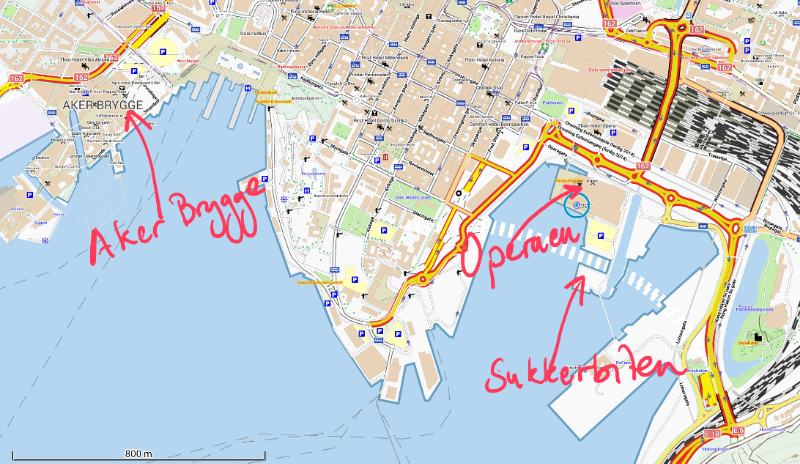 Jag har matsäck med mig som jag tänkte äta ute på Sukkerbiten – inte en torr gammal macka, utan parmaskinka, mosad avocado och surdegsbröd och jag var såååå nära att kokmma dit. Så gick jag förbi Operaen och borden på uteserveringen bara skrek mitt namn, och därmed var det kört.
