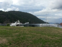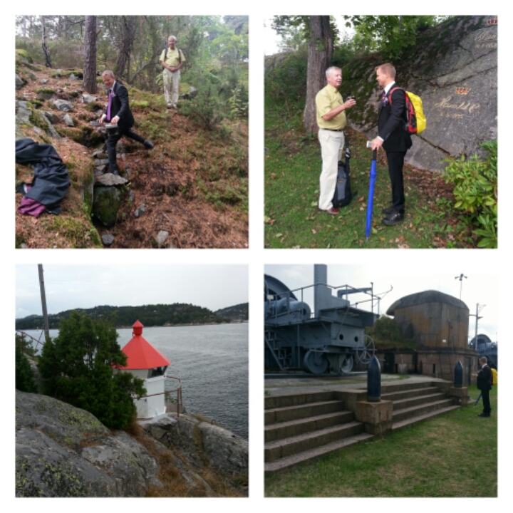 Så är vi här – trots dödsföraktande regn på förmiddagen, ett regn som hade fått Fantomen (om nu någon händelsevis minns honom, det var han som var i de där svartvita urtråkiga serierna längst ner på sidan och som man aldrig läste. Han.) att stanna inne i sin håla. Men vi kröp ut (O var redan ute, för han hade varit på jobbet) och tänkte ”det finns inga dåliga kläder, bara dåligt väder” och tog båten till Oscarsborgs Festning. Det var härifrån ubåten Blűcher sänktes i Drøbaksundet, något som vi svenskar inte känner till så bra men likväl. Fint ställe för en konsert och lite andra nöjen samtidigt.