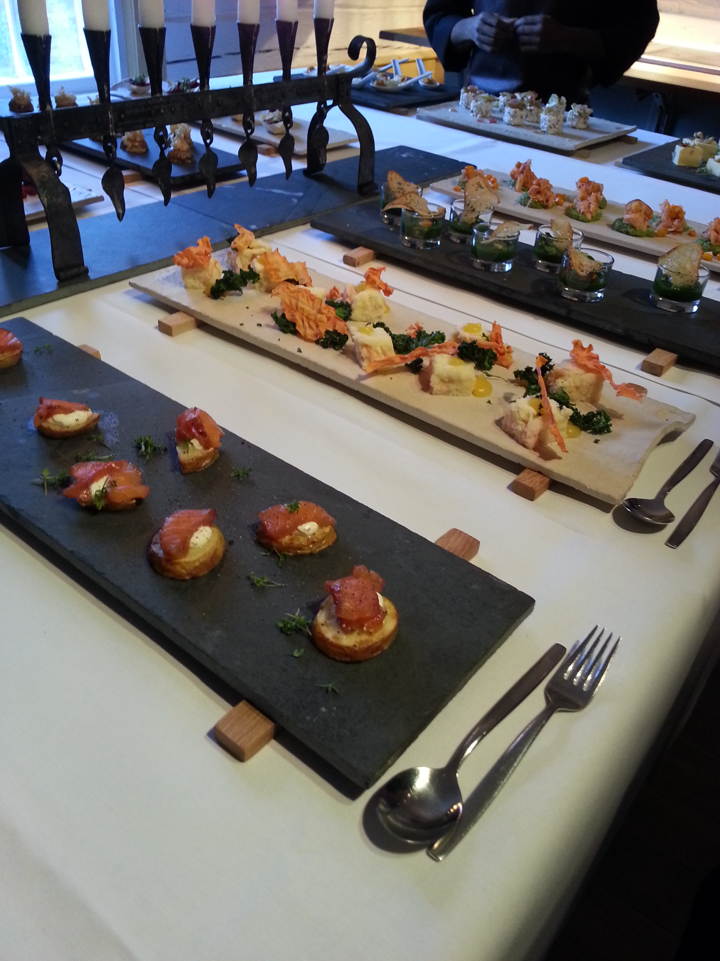 + Annorlunda mat men ändå juligt. Om man gillar det traditionella, dvs gravlax, rökt lax och skinka på fat, revbensspjäll, potatis och sås så är man på väg mot en besvikelse. Men om man har ätit några julbord, hajjat konceptet och gillar det men glädjer sig åt variationer, så har man hamnat på HELT rätt ställe. Traditionella julsmaker i annorlunda kombinationer.