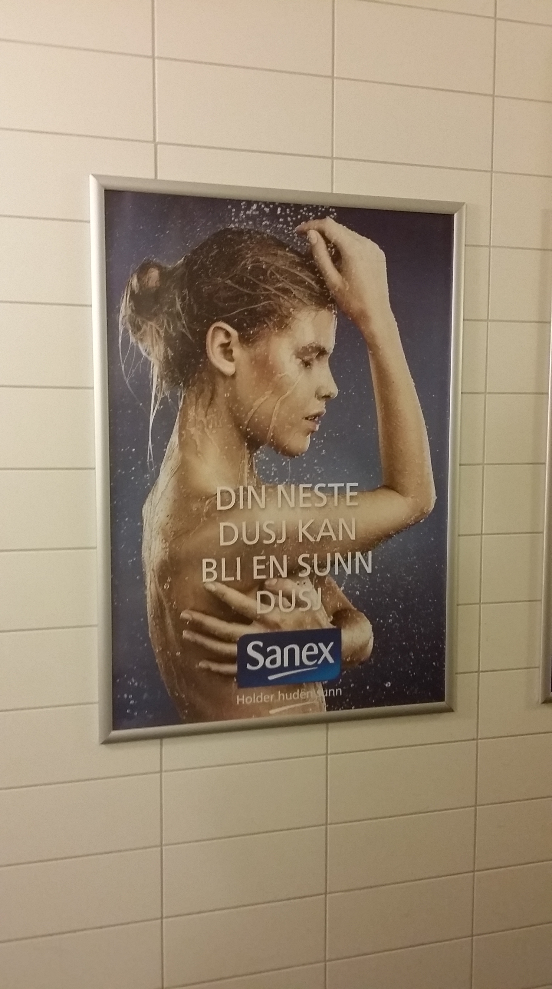 Tjejen som är på bilden är lite väl skinny för att vara lämplig i schamporeklam på gym, eller är det bara jag som tycker det? Andra bilder i samma serie ser helt ok ut, men den här är jag tveksam till. Det är redan så många lite för skinny tjejer i själva gymmet, tror inte den här bilden bidrar positivt.