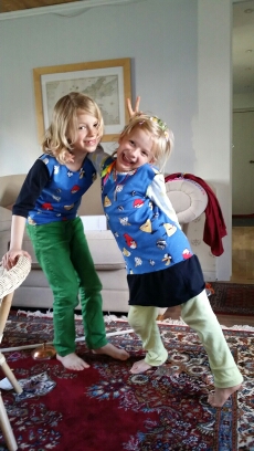 Den till H gjorde jag lite längre och satte en svart lätt rynkad kant på, så man kan säga att det är en klänning. Den har inga ärmar, så är nog rätt skön i sommar.