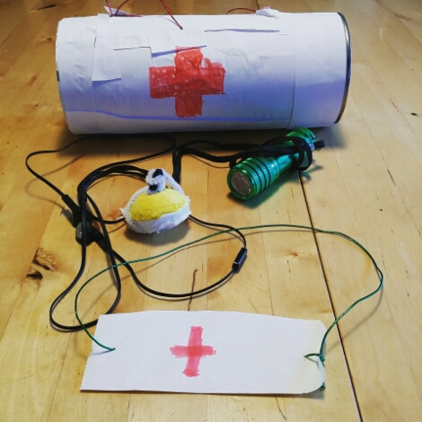 H vill vara läkare och A ställer upp och gör doktorsväska (av ett emballage för en ginflaska), stetoskop (ett par gamla hörlurar och en halv flörtkula) och ett läkarpannband som ser mer ut som nåt en sjuksköterska har.
