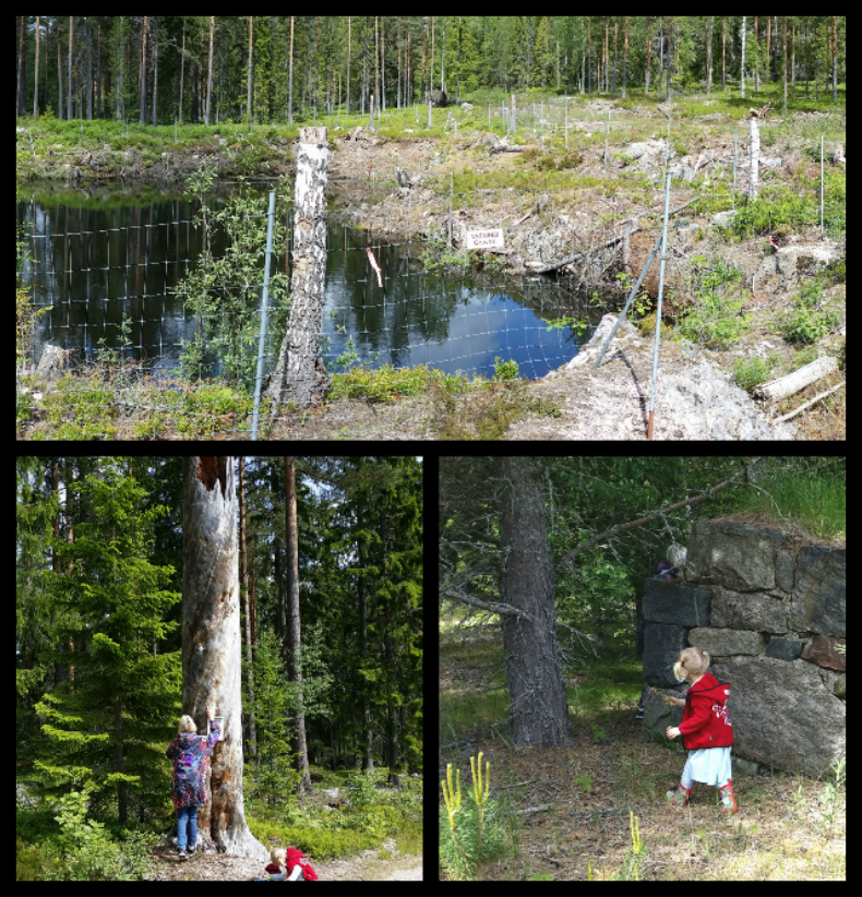 Idag åkte vi till ett område som heter Ödmården, som tydligen är en gammal vildmark där det bodde allsköns lösdrivare. Där fick vi i Romsen se resterna av vad som för 60 år sen var en ladugård med femtio kor i en välmående bygd nu bara är en uppkörsramp i sten och i övrigt helt raderad och ersatt med stora tallar. Fascinerande vad fort det ändå går. Inte ett spår av att det stått en byggnad på platsen.