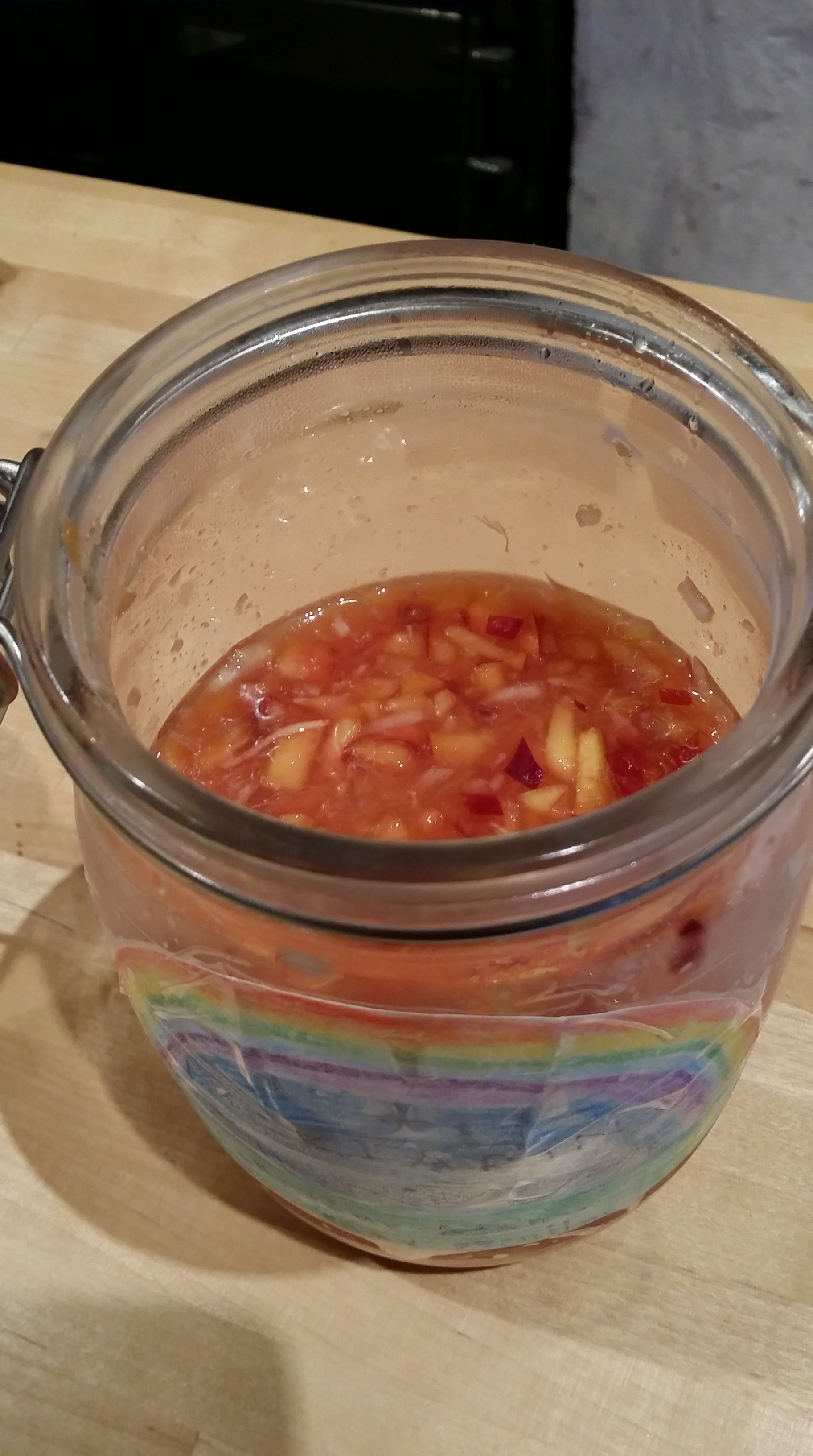 Den här gången fäste sig ögat på en Persikochutney, som jag med en hel skål full av nästan övermogna nektariner kände att jag skulle konvertera till en Nektarin-dito.
