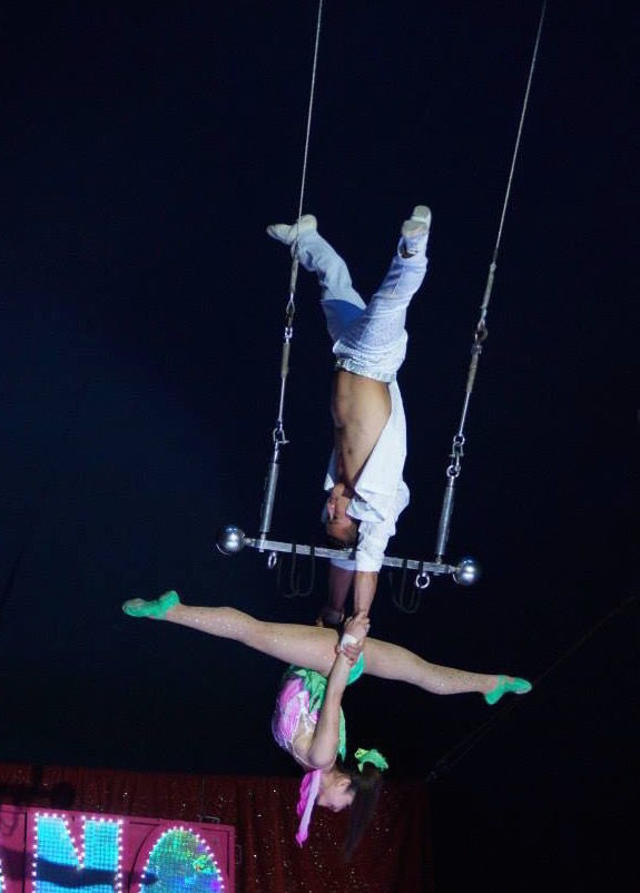 Det var fler sådana skickliga akrobater; de tre jonglörerna ovan och en vietnamesisk duo som tog andan ur de flesta. Hennes dräkt tog i allafall fullständigt andan ur min minsting…rosa upptill och en kort kjol av grönglittriga blad…