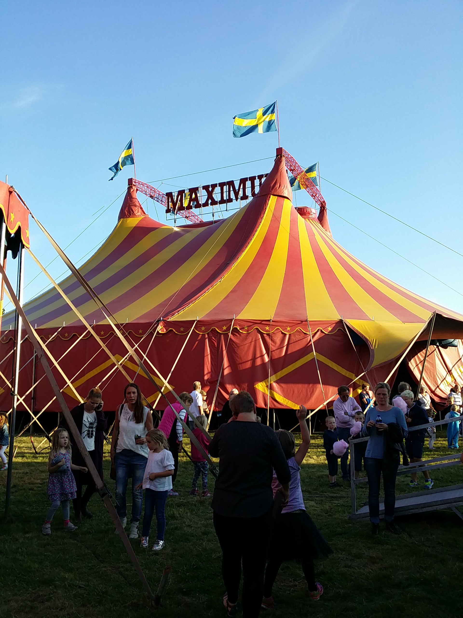 Cirkus Maximum gästar lilla Åsa med fullt spett – tält i ”rätt” färger, vagnar, mycket folk…ja, cirkus 1A helt enkelt.
