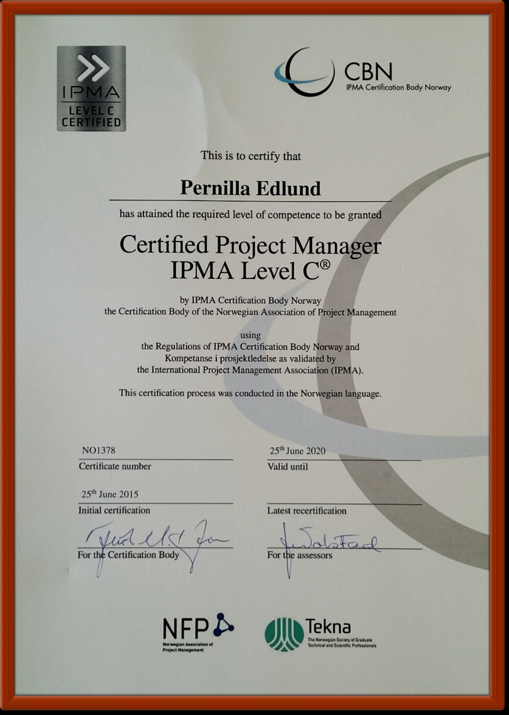 Om några år hoppas jag att jag får anledning att genomföra IPMA B som senior projektledare som ska kunna leda komplexa projekt, men tills dess ska jag gona mig med det här.