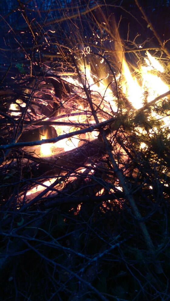 Så nu är vi här. Och vi eldar. Det är riktigt blött i marken, så det tog ett tag innan det blev fart, men den här elden bör hålla sig bra till imorgon då vi fortsätter.