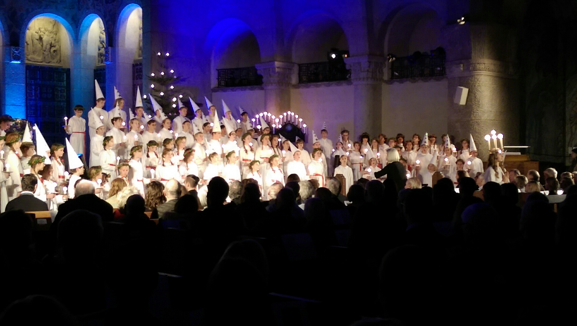 Så jag har en weekend i Stockholm med käraste Anna, och när den sammanfaller med Luciahelgen måste man ju passa på. Som veteran i de här sammanhangen går jag inte på vad som helst, och därför är det bara aktuellt med Adolf Fredriks musikklasser (eller eventuellt Nacka dito), och det bjöds i Engelbrektskyrkan.