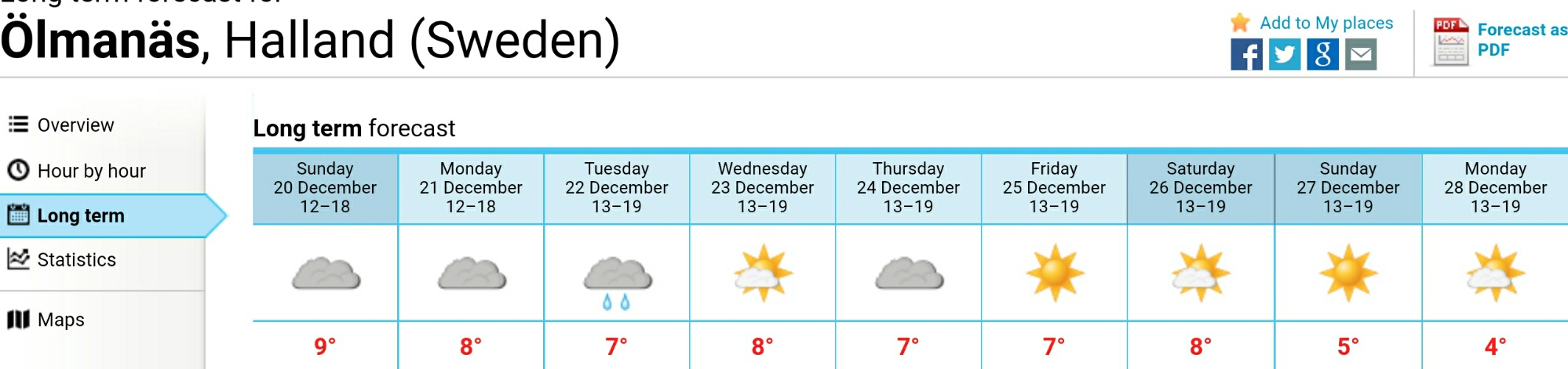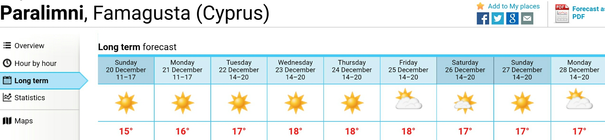 Så jag vänder blicken söderut, till mamma, och även om det knappast blir en vit jul där heller så är det iallafall lite mer i linje med förväntningarna. Efter mina Cypernerfarenheter i december ser det faktiskt riktigt bra ut. Jag tror jag sticker: