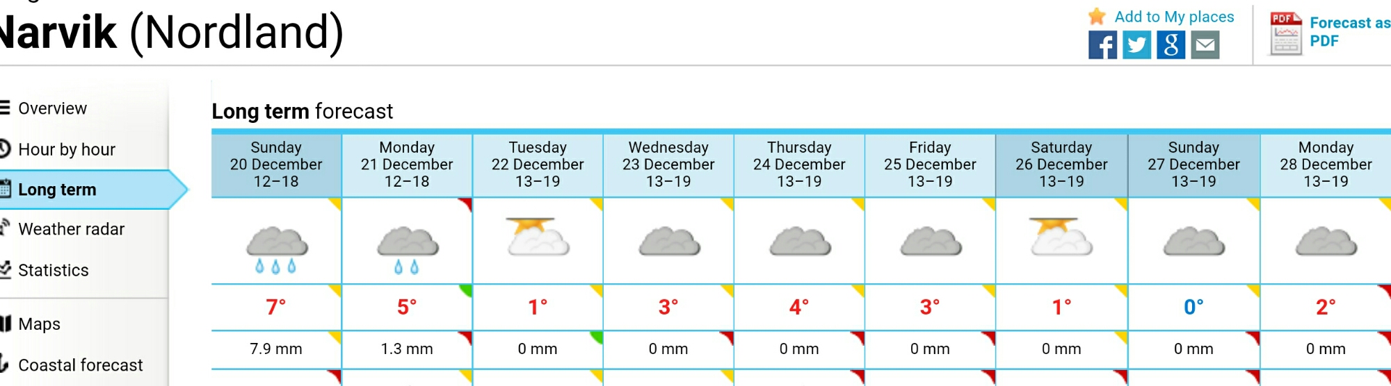 Efter ett samtal med en kollega i Narvik kollade jag in deras webcam över Narvik centrum, men det såg dystert ut. Och det blir inte mycket bättre om man får tro yr.no: