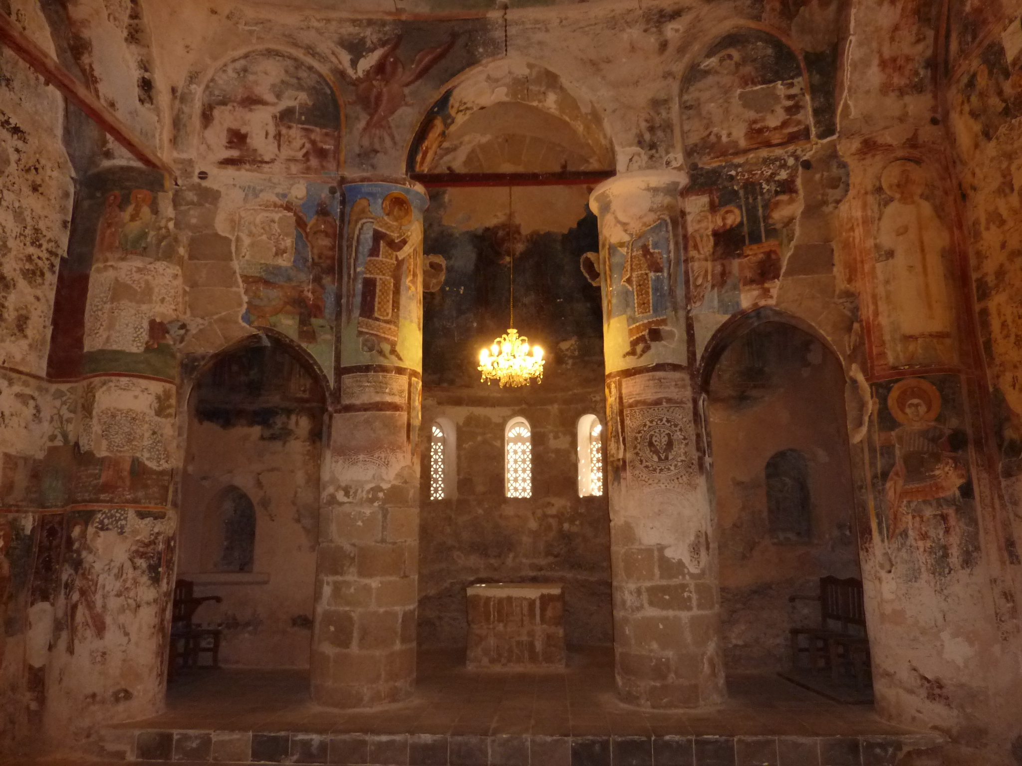 Enligt samma Wikipedia och från Wondermondo får man veta att den första kyrkan byggdes här på 600-talet och klostret kort därefter, och att de byggdes om på 1100-talet. Rätt otroligt att den fortfarande står där den står. Målningarna är både från 1100-talet och 1400-talet. Jag önskar att jag kunde fått se dem. Utan att betala till Turkiet för det alltså, eftersom det inte är deras kloster utan dom bara har snott den.