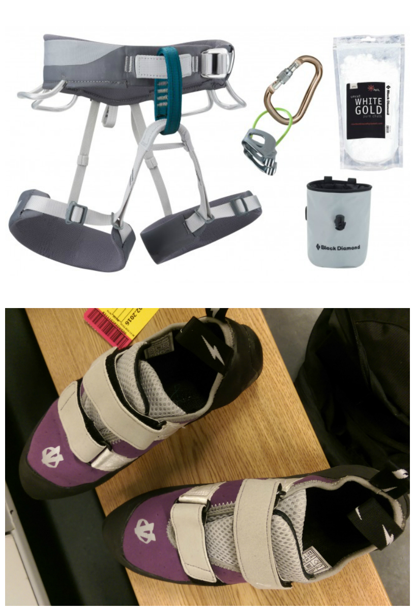Köpa utrustning gick utmärkt, tog med det FETA kreditkortet och det var väl tur det. Det blev basisutrustning 1A; skor, sele, låskarbin, taubrems (heter tydligen ”säkringsdon” på svenska, mycket konstigt ord när det norska heter ”repbroms” vilket ju är precis vad det är) och krita. Visserligen har jag en ursnygg kritpåse från back-in-the-days, som är i alla snygga grälla färger man kan tänka sig, men nu har jag en till då eftersom den ingår i packen.