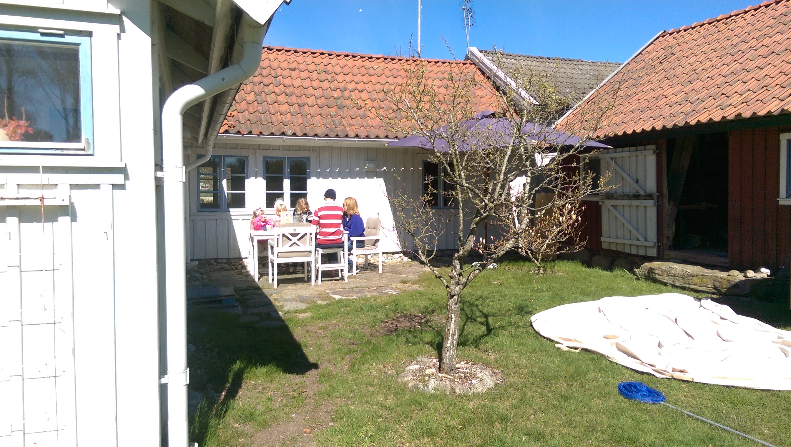 Efter kalla april brakade maj in med strålande sol och vindstilla. Javisst, kallt var det, men när det inte blåser så märker man det inte. Så ut med solstolarna och ligga på baksidan och mysa. Allra käraste A var nere och firade Valborg med mig och killarna (medan O var inne i Gbg på Kustenlunchen) och de sov över, så gott sällskap hade man där ute på baksidan också.