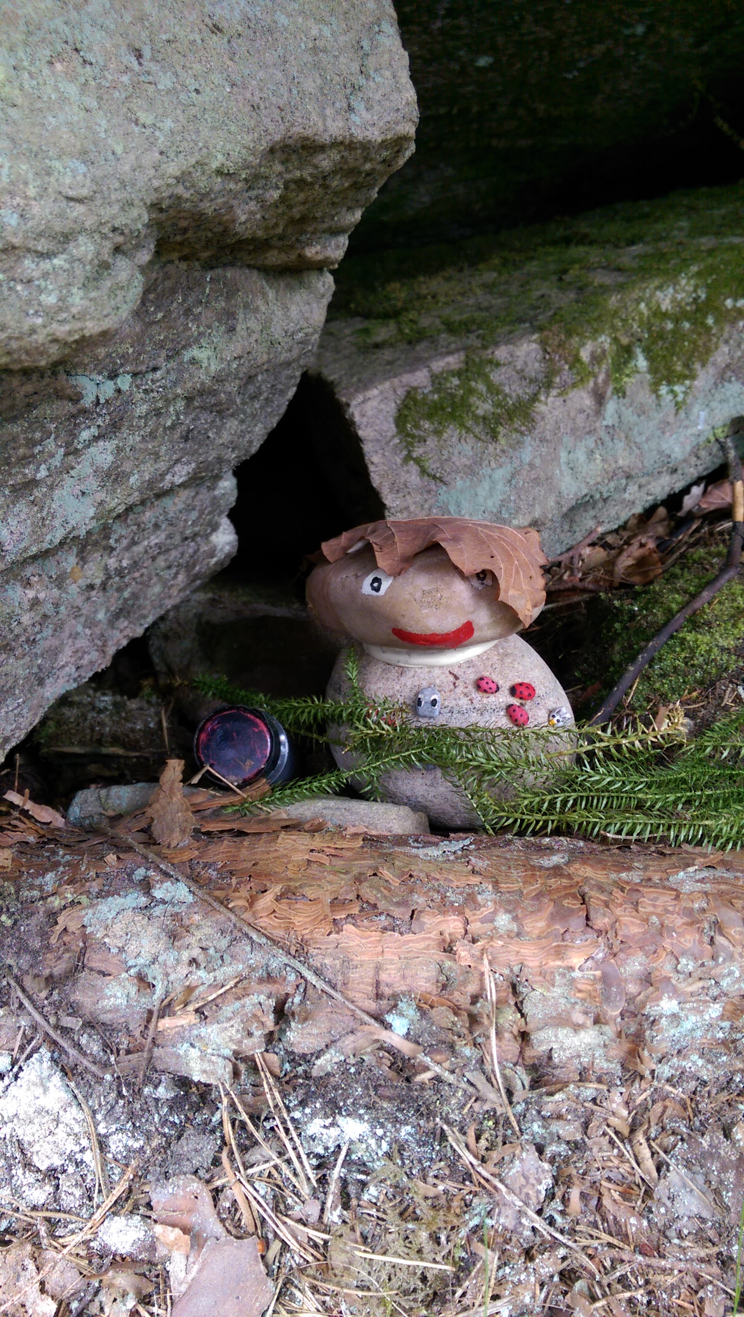 Några fina gömmor såg vi också, kul när folk har lagt ner lite själ i sina installationer. Bland annat en gubbe gjord av grenar (mer raffinerad än Knerten, if I dare say so…) och fina troll och häxor, målade, limmade och pyntade. Favoritpoäng delades generöst ut.