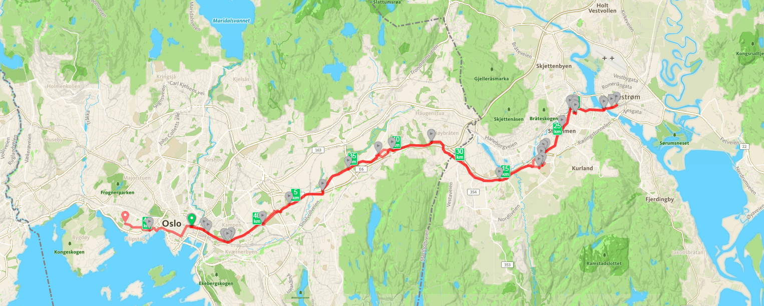 I fredags cyklade jag Oslo – Lillestrøm, en sträcka som blir startsträckan om jag ger mig ut på min långcykling. 23 km, inget man dör av, men problemet är att efter Lillestrøm finns det ingenstans att bo före Magnor vid svenska gränsen. Och dit är det ytterligare 8-9 mil. 11 mil första dagen är ett rätt mastigt mål, så jag har funderat på att skippa Oslo-Lillestrøm helt och ta tåget den sträckan istället. Ergo ville jag provcykla den för att se om det var värt det.