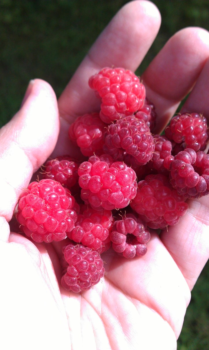 Och jag har sett näst intill obscena mängder hallon. Trodde inte det fanns så många hallon här på jorden. Och bara här i Magnor lixom…Jag hade inget att plocka i så jag plockade i munnen – handfull efter handfull med stora, fullmogna, helt fria från odjursangrepp. Fantastiskt goda. Men jag åkte förbi ganska många löpmeter med manshöga hallonbuskar stappfulla med hallon innan jag tog ro till mig att faktiskt stanna och plocka.