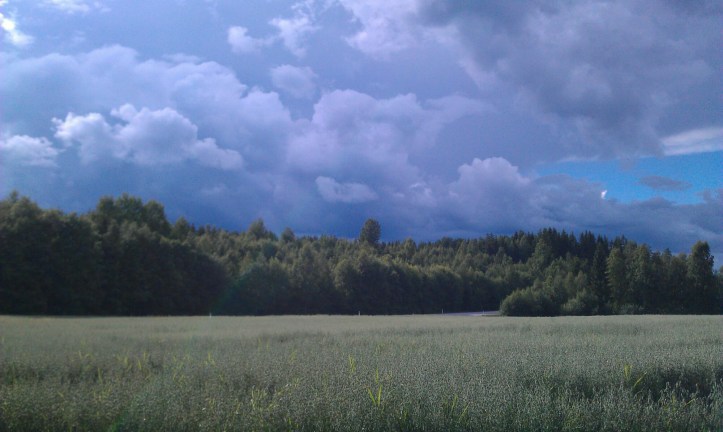 Däremot var det ett fascinerande väder. Jag som inte bryr mig något särskilt om väder kunde inte låta bli att tilltalas av de mörka molnen som var runtomkring samtidigt som jag själv cyklade i strålande solsken. Emellanåt kom det en droppe eller två, men det var precis så jag fick på mig regnjackan så var det över och solen strålade igen.