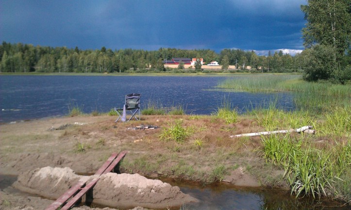 På väg tillbaka passerade jag Magnor Centrum och dess café/pizzeria igen. Nu började molnen se lite mer hotfulla ut, och jag laddade för en kväll i tältet. Och det var smart gjort visade det sig, för sen började regnet. Jag fick äta en bit ute vid mitt fina bord och sen kom regnet. Men jag proppade in mig i tältet, bullade upp med sovsäck, pizza, juice och HBO. Dvs tills wifi’et gick ner. Då kurade jag ihop mig, lyssnade på smällarna, räknade sekunder från blixtarna och lät Kent sjunga för mig istället. Några smällar var riktigt nära men ingen helt över mig tack och lov. Åska gör sig inte riktigt från tält, kan man säga.