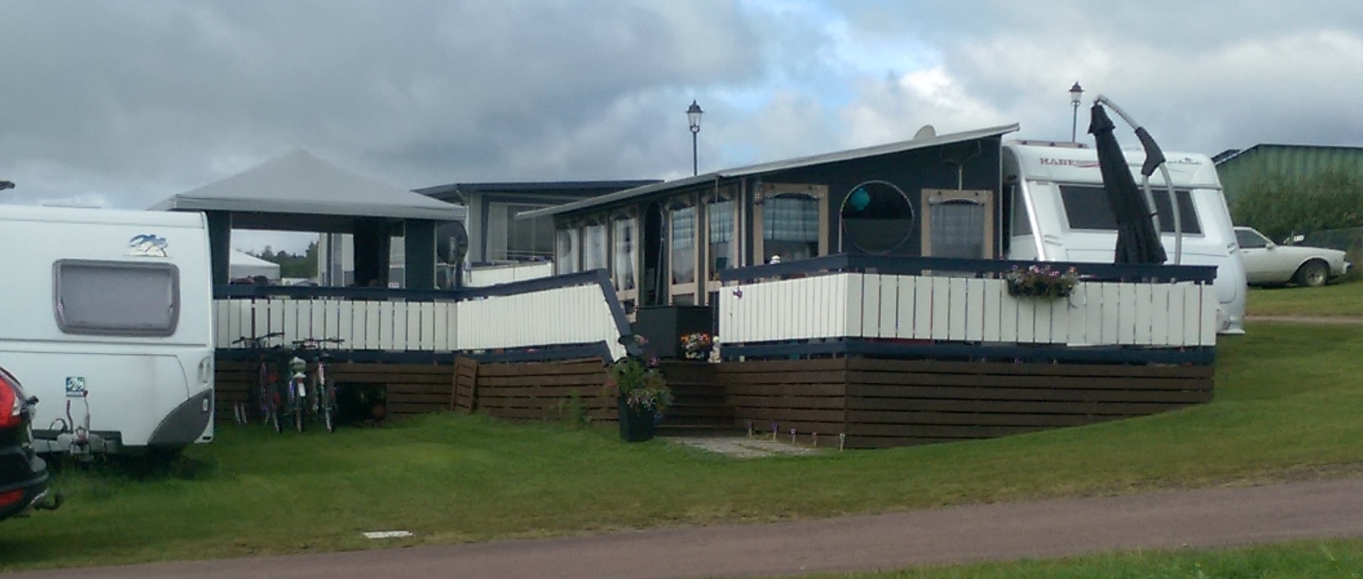 De där som bor på en camping, har det som sommarstuga och bygger staket runt, sätter utebelysning, altan och rabatt du vet, där ”sommarstugorna” ligger med två meters avstånd från varandra. Dom har jag studerat lite nu de senaste dagarna. Jag har tidigare tänkt att det väl är något lite temporärt över deras val av boende, inte så att de flyttar det för det vet jag ju att de inte gör, men jag har väl tänkt att de inte bor in sig SÅ mycket. Men det gör dom. Det är verkligen en sommarstuga. Lampetter i fönstrena på yttertältet, stor TV (flatskärm givetvis) och alla bekvämligheter.