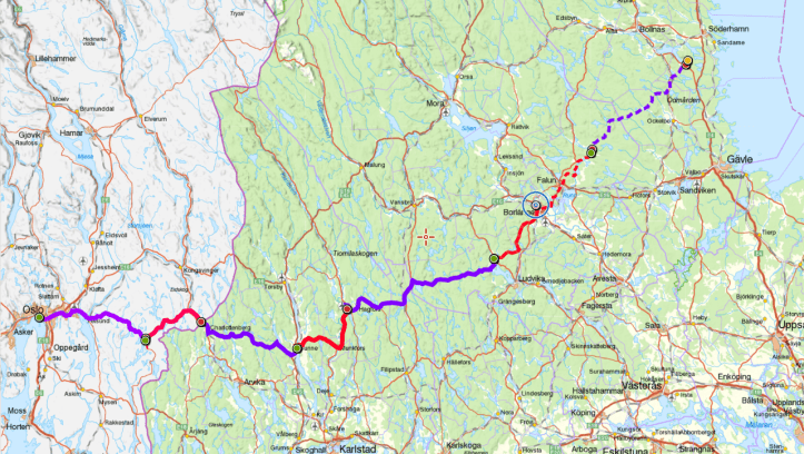 I och med att jag är i Borlänge nu (ett oplanerat stopp på vägen som blev av att jag stack tidigare än planerat från Grangärde) så har jag cyklat ca 41 mil, eller 79% av vägen.