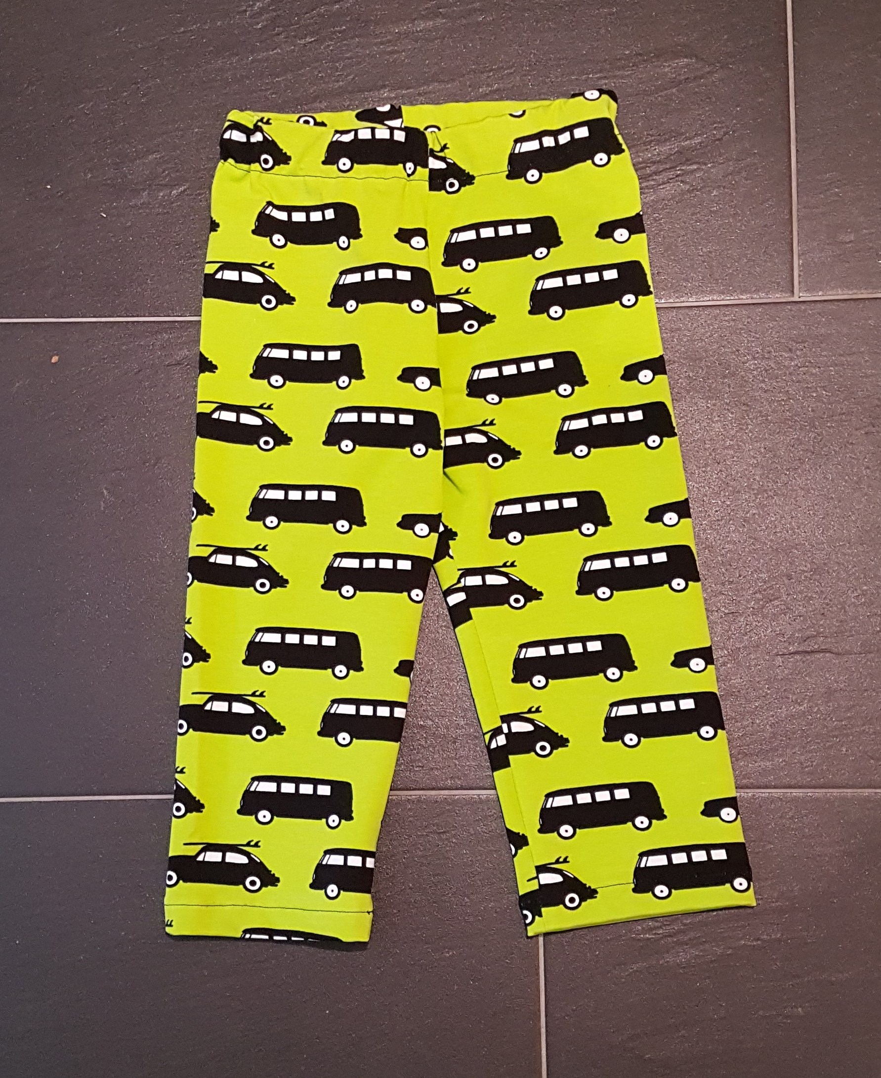 Näst ut var ett gammalt tyg med bilar på, ett jättefint tyg som blev en t-shirt till Adam för två år sedan och sen varit en stump som bara legat. En perfekt stump för ett par trekvartslånga leggings, visade det sig.