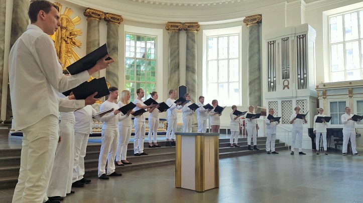 Jag hade varit borta på lite för många rep (pga bröstcancern…) men lyssnat mycket på musiken så det gick superbra!! Det finns inspelning på konserten men det är tveksamt om den får delas. Hur som helst är jag så himla glad över att min sångröst är kvar när jag trodde den var helt körd, och att notläsningen och gehöret är där också även om det är lite rostigt.