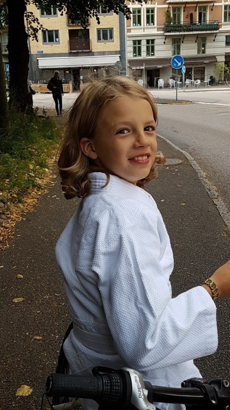 Det var tisdag och dags för Ju-Jutsu. Sist vi var här var för två veckor sedan, då tyckte A mest att det var allmänt awkward att vara ny på ett ställe och vi var där för att titta på en träning. Han ville inte träna själv, det fick jag lova. Han har tränat lite taekwondo tidigare i Oslo och vill gärna hålla på med någon pyjamassport så han är sugen, men det är ju det där med att vara ny…