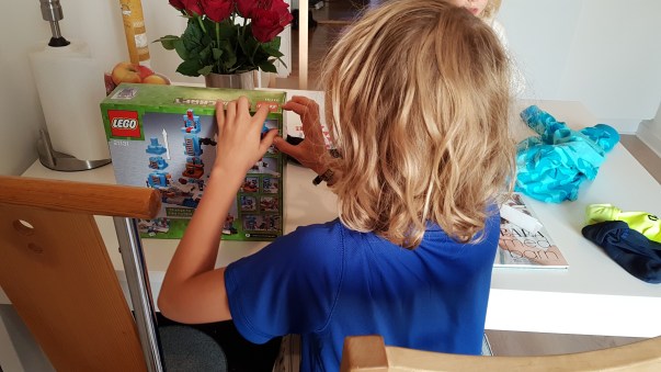 Present på sängen blev ett minecraftgosedjur (Endeman), och sen tog vi resten i köket. Viktigast var såklart Minecraftlegot, som genast nagelfors och så småningom började byggas med.