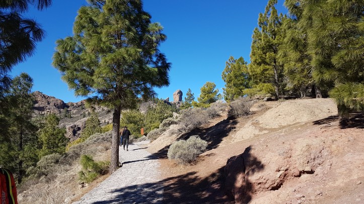 Så var vi då uppe vid parkeringen för att gå upp till Roque Nublo. Folk kom gående ner i shorts och T-shirt, så vi började väl fundera på det där med våra klädval lite grann, men vi gav oss iväg på den ca 1,5 km långa vandringen.
