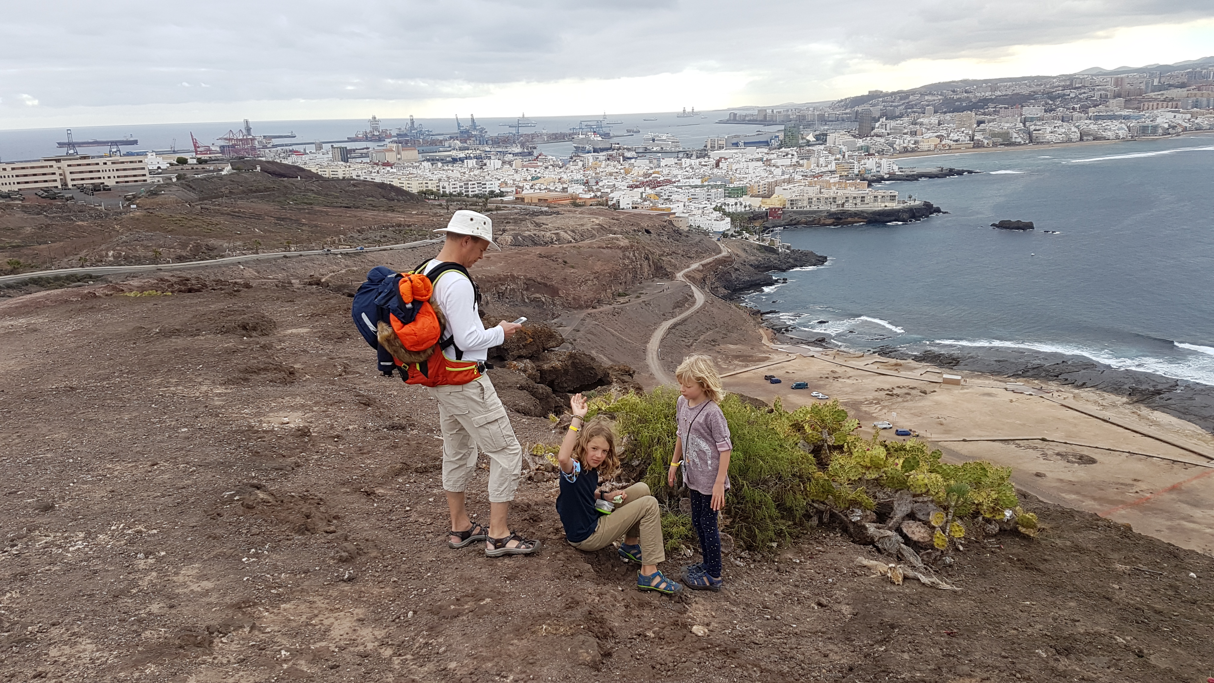 Vi åkte från hotellet direkt efter frukost. Ingen idé att blöta ner badkläder för en timme eller två vid poolen. In med väskorna i bilen, och för att fördriva tiden åkte vi upp till norra änden av ön, till huvudstaden Las Palmas. Målet var väl lite oklart, men vi styrde kursen mot den lilla halvön som sticker ut längst upp bara för att ha något att sikta på. Ja det fanns en cache där också men det var knappast avgörande för det fanns det fler av på lättare ställen.
