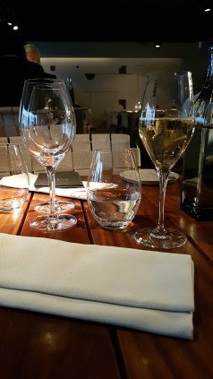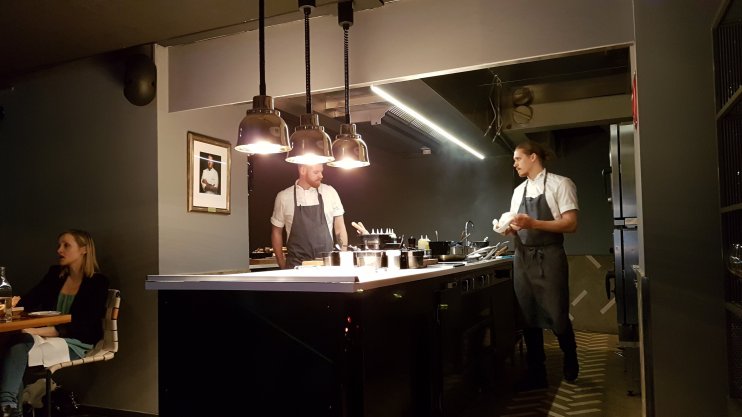 Modern inredning, dvs mörkbrunt/grått och dystert som vilket hotell som helst nu för tiden (jo jag e lite bitter) men fint. Köket är öppet och det är kockarna som kommer ut med maten.