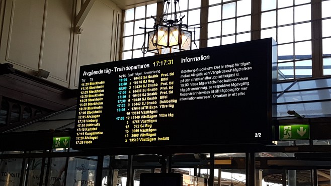 Jag var en av dom hundratals människor som stod på Göteborgs Central och väntade på tåg som blev uppskjutna och uppskjutna men inte inställda så vi kunde gå hem.