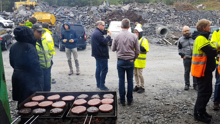 Kul att stå och steka burgare till alla och stå och småprata med dom lite, det blir oftast inte så mycket tid till det när det är jobb för dom är så upptagna hela tiden. Och det blev inte de långa samtalen här heller – glufs glufs, i med två hamburgare, lite dricka, svälja (nästan), tacka för maten och så upp i dumpern igen för att köra några timmar till.