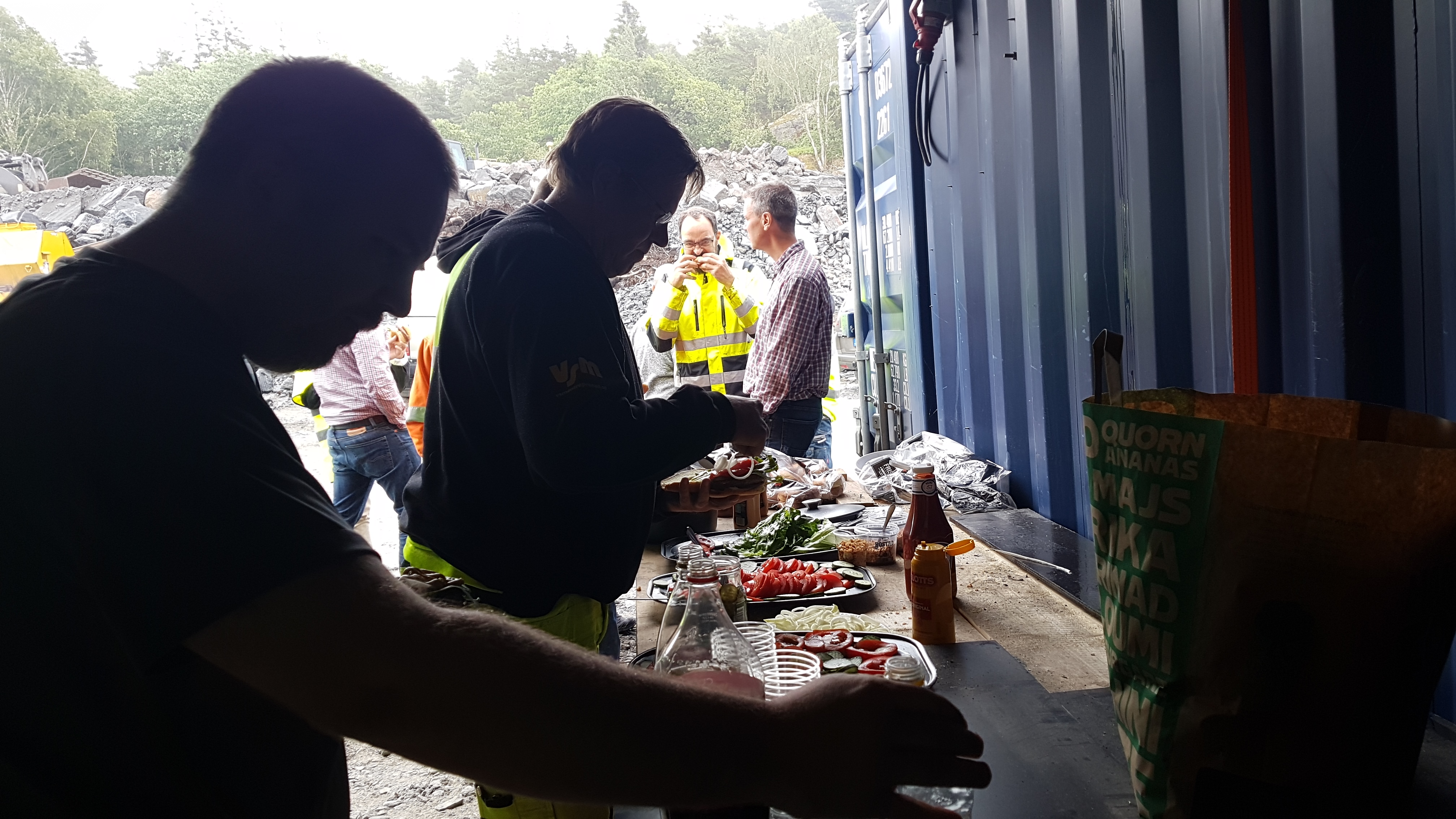 Grillen var placerad i en öppen container som är lite fixarbod på bygget. Innan vi drog igång flyttade dom på dieseltanken som stod där, tack för det.