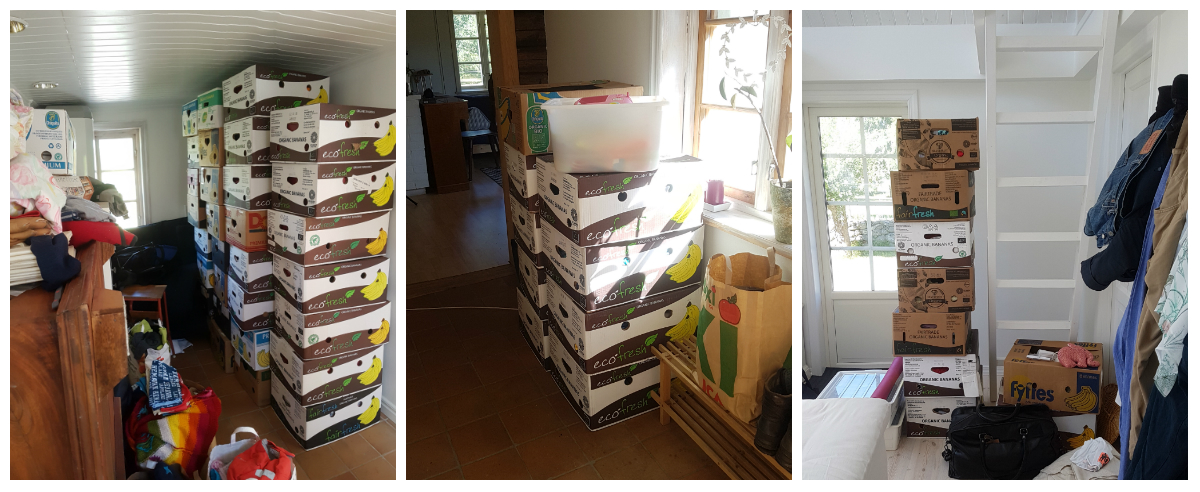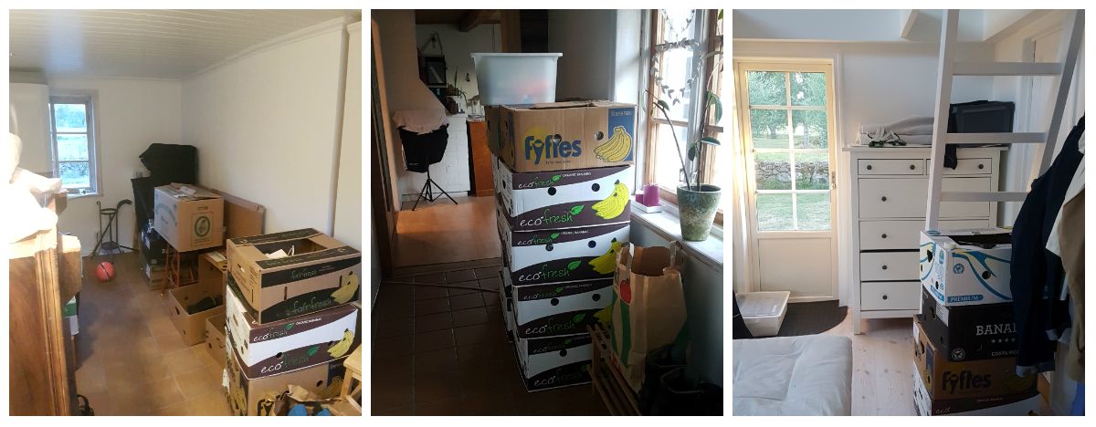 You get the picture? Och särskilt stort är inte huset heller. Så idag trotsade jag det underbara vädret och stod inne och sorterade banankartonger – yayy!!